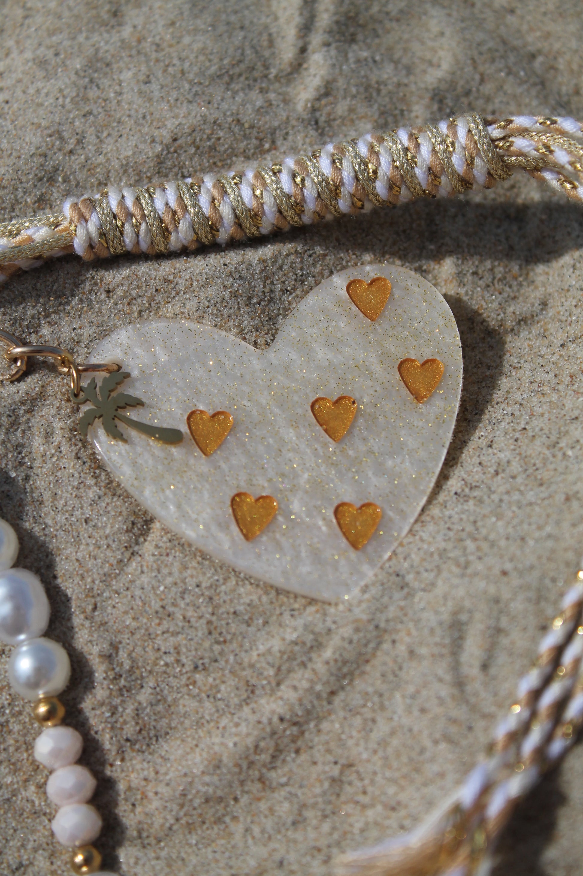 Capturez lâessence du luxe et de la douceur avec cet accessoire Ă©lĂ©gant. Un cĆur en rĂ©sine dĂ©licatement façonnĂ©, renfermant des feuilles dâor Ă lâintĂ©rieur pour un effet raffinĂ© et prĂ©cieux. L'alliance de la transparence de la rĂ©sine et de la brillance de lâor crĂ©e un contraste subtil, apportant une touche d'Ă©lĂ©gance et de sophistication Ă votre look. Parfait pour personnaliser vos sacs, porte-clĂ©s ou tout autre accessoire, il incarne Ă la fois lâamour et le luxe dans un dĂ©tail unique.