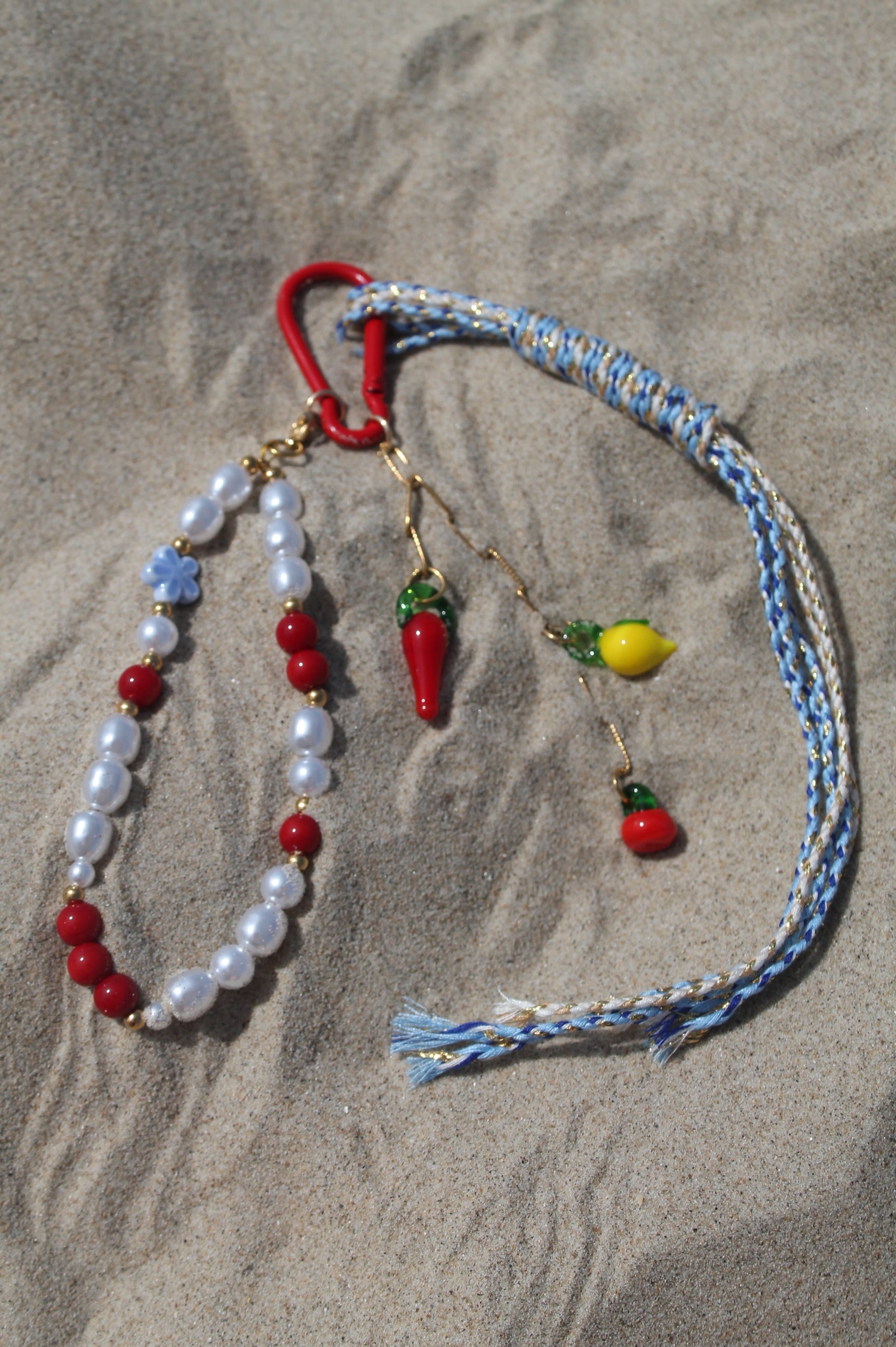 Ajoutez du pep’s et de la couleur à votre style avec cet accessoire original. Un piment vibrant, des cordons rouges dynamiques et un citron rafraîchissant créent une combinaison unique, idéale pour personnaliser vos sacs à main, porte-clés ou autres accessoires. Le contraste entre le rouge du piment et la fraîcheur du citron apporte une touche d’audace et de fun, tandis que les cordons ajoutent une note d'élégance décontractée. Parfait pour apporter un clin d'œil d'originalité et de fraîcheur à vos tenues estivales.